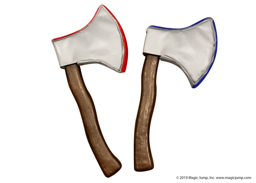 SAFETY WARNING, foam axes should never be thrown at other participants. To avoid serious injuries, use foam axes on the inflatable axe throw game only.