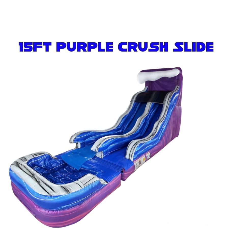 Make way for the 15' Purple Crush Slide Wet or Dry from Magic Jump, Inc. The vibrant purple and blue vinyl will catch everyone's eye at any event. Order the 15' Purple Crush Inflatable Slide today.