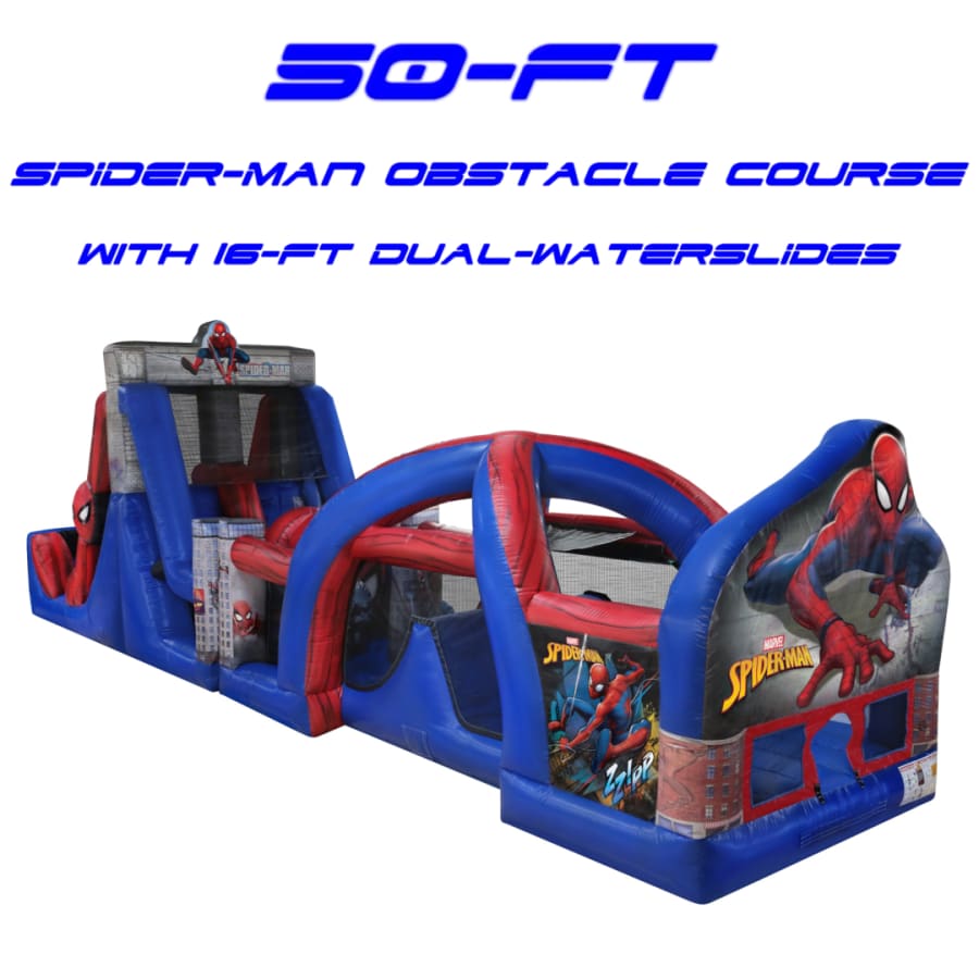 50Ft OFFICIAL Spider-Man Obstacle w/ 16FT Water Slide