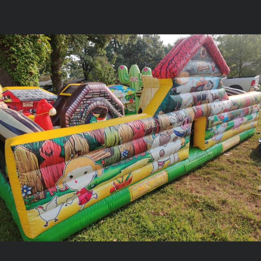 My Little Farm Toddler Bounce is a great party favorite for the little ones. One entry front and high enough walls they cannot get out unless they use the door. Keeps the kids visible the whole time and able to have all the fun they can stand.